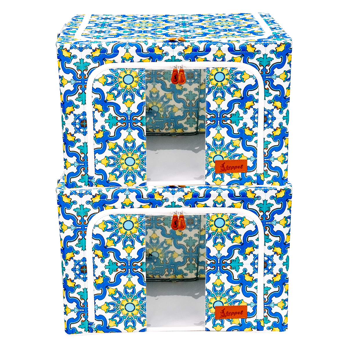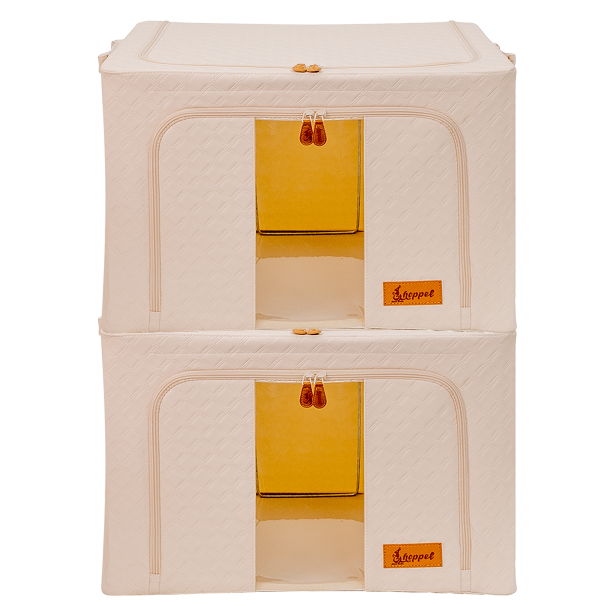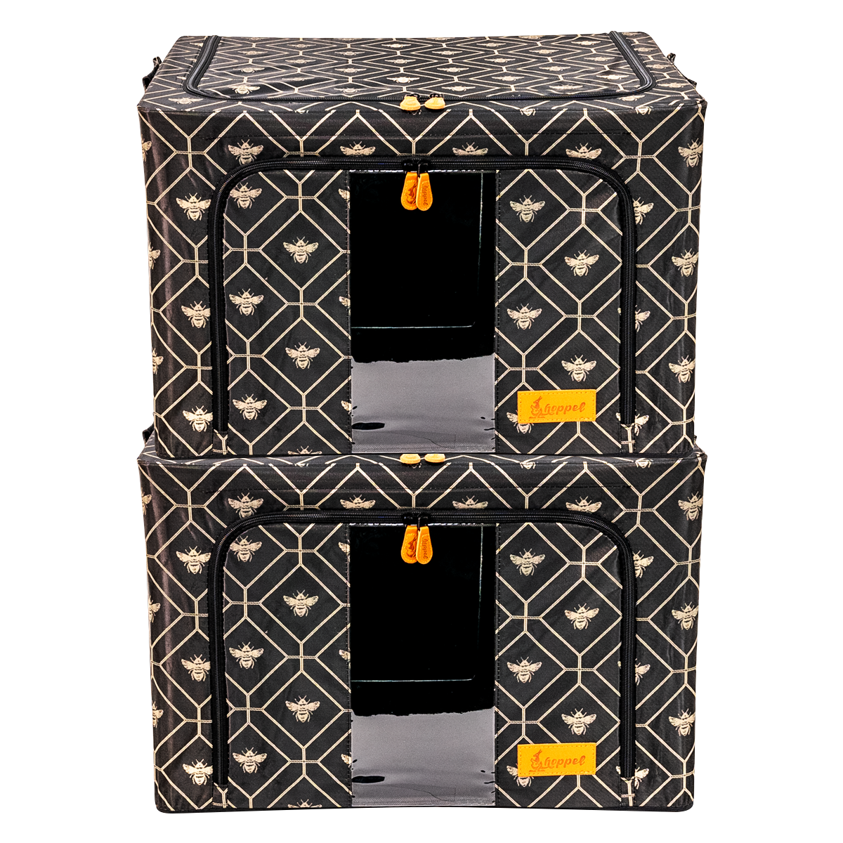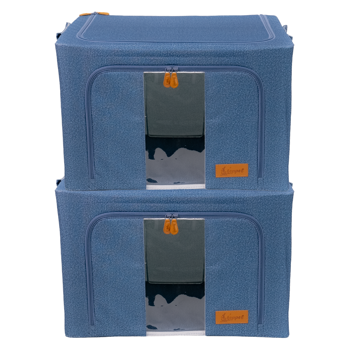 Get organized with style and confidence! The Hoppel 2pk Large storage bins each offer 3 entry points with peek-a-book window to see contents inside and access with ease. No more having to take bins off a shelf or rearrange stacks to get to the right storage bin. The strongest soft sided storage bin on the market and supporting up to 55 lbs. of weight, the set has a reinforced base, thick steel metal frame, industrial grade zippers, and more. Assembles and collapses in seconds for ease of use and travel. Available in 6 color options. Stay organized and maintain style with Hoppel.