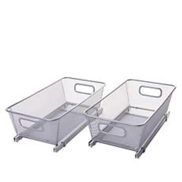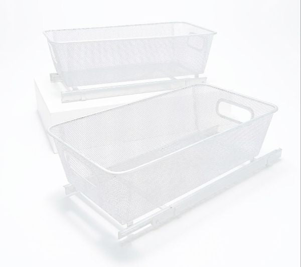 Get your cabinets organized with these sliding basket drawers from Origami. Each drawer can hold an amazing 33 lbs! Perfect for bathroom, kitchen, laundry room, garage - you are only limited by your imagination. Mount options included for either permanent install with hardware or a more semi-permanent with provide 3M strips.